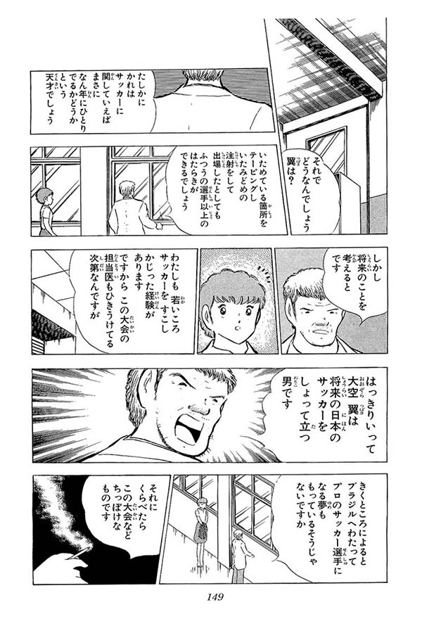 Ma fare il capitano non è facile, hai delle responsabilità e il resto della squadra ti deve ascoltare, e Hyuga e Matsuyama riconoscono di non essere adatti a quel ruolo. E così la fascia di capitano viene data a Tsubasa.