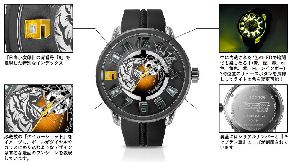 Dopo i modelli di Casio, Locman e Imperial Enterprise Co., un nuovo orologio si aggiunge alla lista dei desideri dei fan di Captain Tsubasa. La casa produttrice svizzera Tendence ha deciso di festeggiare il suo 15° anniversario con una serie di collaborazioni prestigiose, e una di queste riguarda proprio la celeberrima serie di Yoichi Takahashi.
