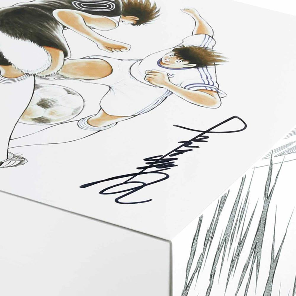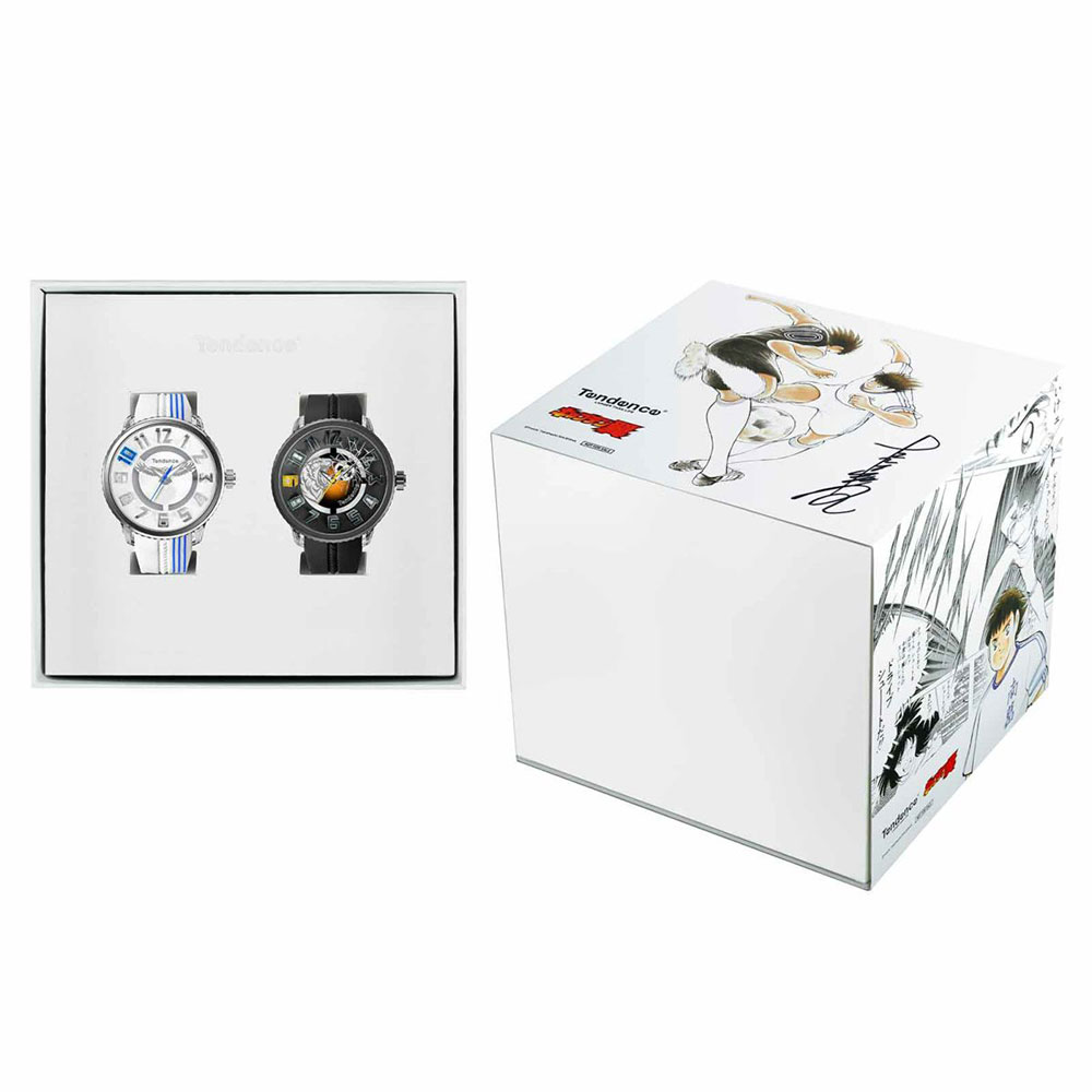 Per chi fosse indeciso, la Tendence ha previsto uno speciale box in edizione limitata, contenente entrambi gli orologi. La confezione comprende un autografo originale di Yoichi Takahashi e, sui lati, riproduce le scene dei due celebri tiri, tratte dal manga.