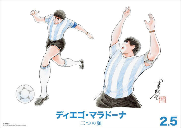 In occasione della scomparsa del numero 10 per eccellenza, Takahashi ha postato un suo disegno, realizzato nel 2019, per l’uscita in Giappone del film sulla vita del fuoriclasse argentino. Vestito con la maglia bianco-celeste della Selección, Maradona insegue un pallone ed esulta, con le braccia al cielo.