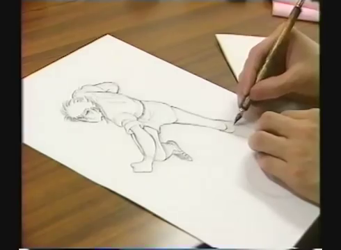 Ecco quindi che il sensei si siede al tavolo e comincia a disegnare. Il video ci mostra davvero nel dettaglio il lavoro a piccoli tratti veloci, che serve a dare dinamismo e movimento. Dopo lo schizzo realizzato con una matita dalla mina piuttosto dura, Takahashi passa all’inchiostratura, con china e il pennino G-pen. Si tratta di uno dei classici pennini da mangaka, di durezza intermedia, che permette una grande versatilità. Vediamo infatti che il sensei lo utilizza sia per i tratti fini del viso che per quelli più pesanti delle gambe, dove la linea serve anche a dare un senso di tridimensionalità.