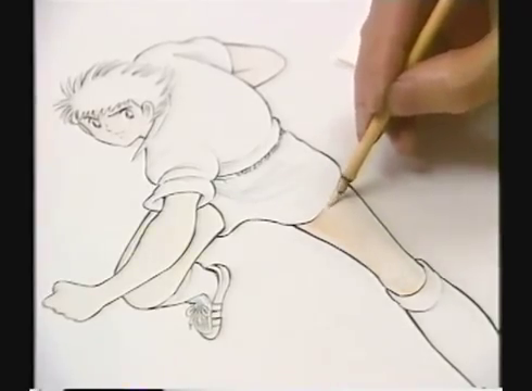 Per il pallone, Takahashi non disdegna l’uso del compasso, il cui tratto viene completato con un portamine, sempre con una punta piuttosto dura.