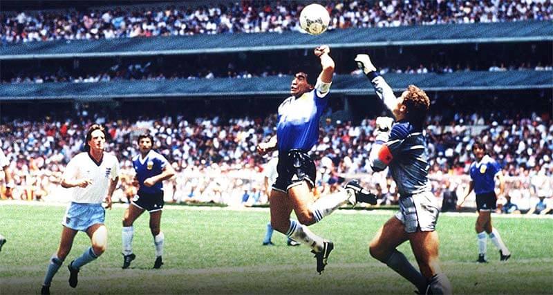 Diego Maradona, un giocatore famoso nella storia del calcio. Una leggenda vivente, che ha avuto una grande influenza sul mondo del calcio moderno. Il torneo in cui Maradona divenne una leggenda fu la Coppa del Mondo tenutasi nel 1986 in Messico. Maradona, che vi partecipò come asso della nazionale argentina guidata da Carlos Bilardo, fece una giocata memorabile nei quarti di finale contro l’Inghilterra. Un gol con la “mano de Dios”, segnato toccando la palla davanti al portiere avversario, uscito sul cross, e un gol in cui salta 5 giocatori, con un dribbling che si trascinò dietro l’intera difesa inglese fin da centrocampo. L’Argentina, che vinse con queste due reti, sconfisse poi in finale la Germania, aggiudicandosi la sua seconda Coppa del Mondo.